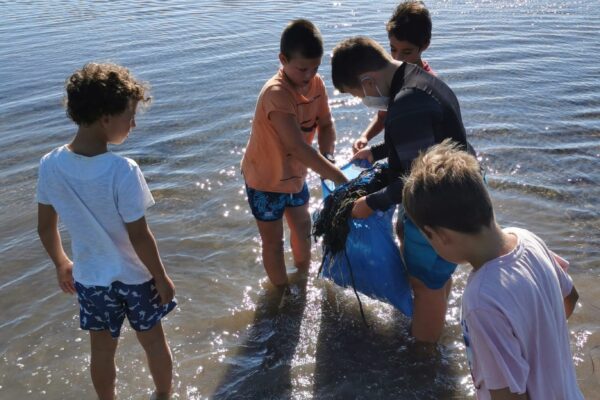 En su compromiso permanente por el cuidado del medio ambiente, los monitores del Club han organizado este lunes 6 de Julio la clasica jornada de limpieza del litoral de la bahia en su parte de poniente, a ambos lados del Club, En total, los 40 alumnos inscritos en la actividad «Un Mar d´aventures» han recogico cerca de 25kg de plasticos, restos de aparejos de pesca, neumáticos, restos de boyas y un sinfin de pequeños objetos varados en la orilla de…