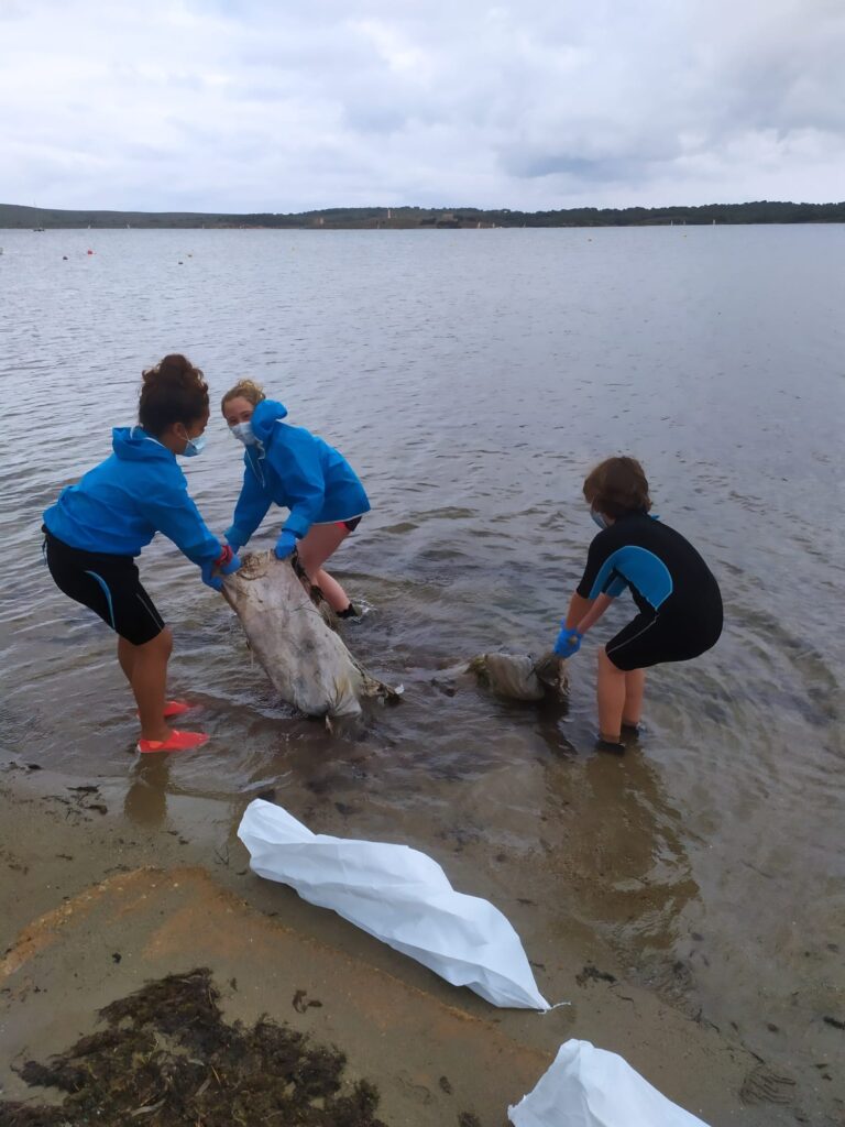 Este sabado 1 de mayo los alumnos de la escuela de windsurf, aprovechando que debido al poco viento reinante no se podia navegar, realizaron una jornada de limpieza del tramo del litoral que va desde Na Peu a Sa Caseta blanca, tramo adoptado por el Club en el programa «adopta un tram del litoral» del Gob.